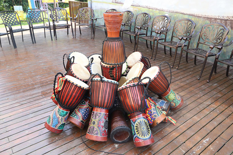 打非洲鼓,唱非洲歌,做非洲衣等等,互相传授,由点及面,互相协助,产生丰富多彩的非洲表演节目:“同鼓舞”。